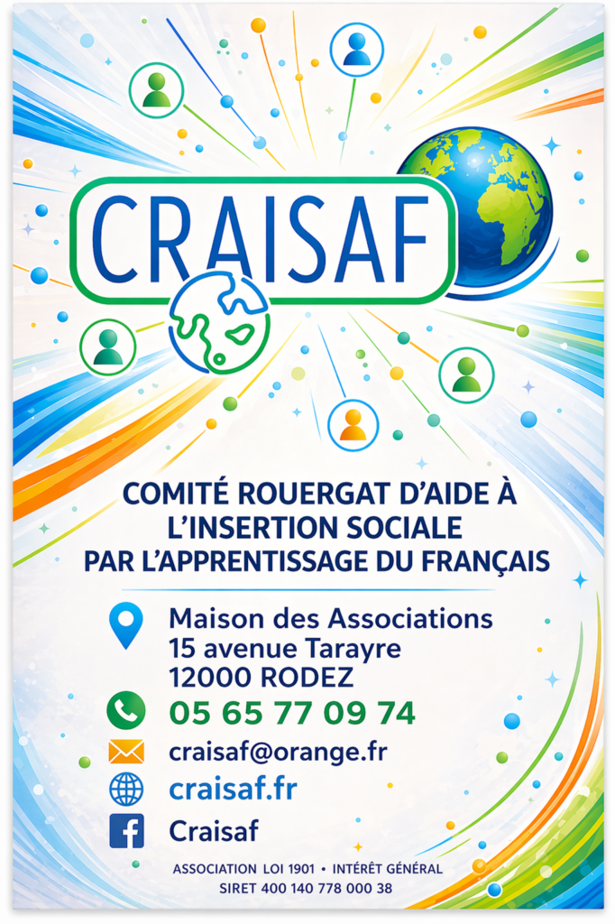 Le CRAISAF-Comité Rouergat d’Aide à l’Insertion Sociale par l’Apprentissage du Français- accompagne des adultes dans l’apprentissage du français et leur insertion dans la vie locale.