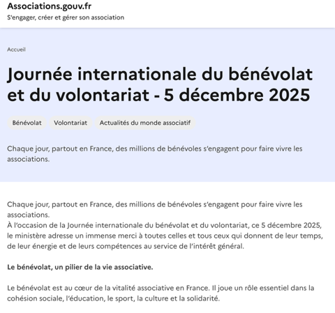 Journée Internationale du Bénévolat – 5 décembre 2025